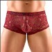 Mini boxer moulant orné d’une dentelle florale rouge foncé à la taille élastiquée. Doux et extensible pour un confort optimal. 90 % polyamide, 10 % élasthanne.