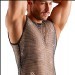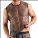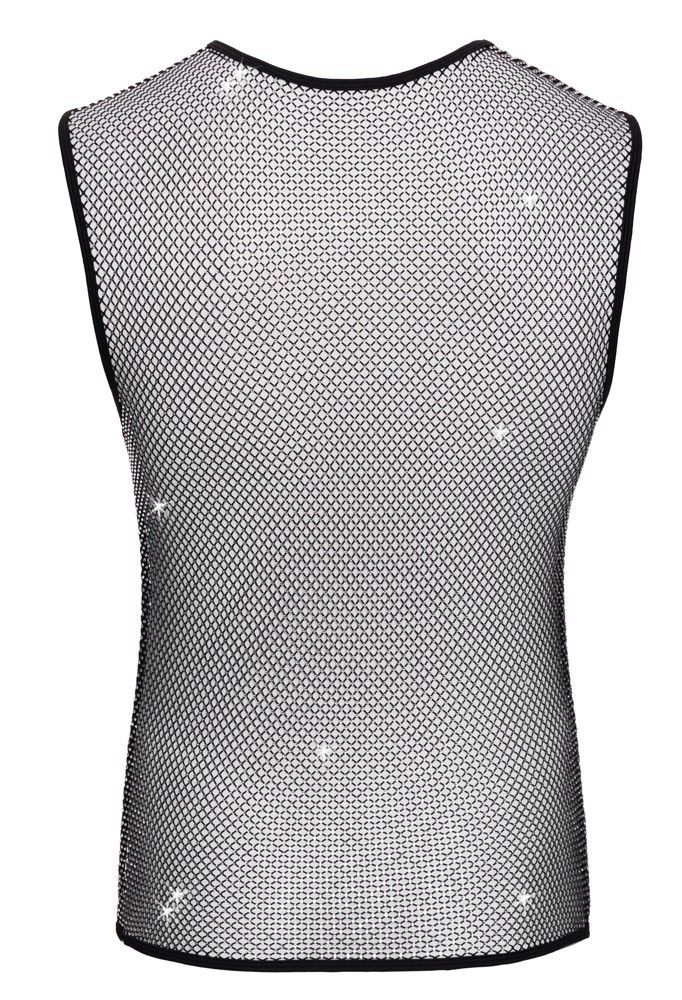 T-shirt en résille de Svenjoyment, sans manches, d'une transparence noire excitante. Recouvert de petites pierres scintillantes. Aérien et doux pour un maximum de confort.