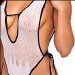 Body à la coupe ajustée en blanc avec des contrastes noirs. Il séduit avec un dégradé de dentelle semi-transparente dans la partie supérieure jusqu'à l'entrejambe opaque. Décolleté extra-bas à l'avant et à l'arrière et entre bonnet dans le décolleté. Entièrement ouvert sur les côtés avec des nœuds à nouer individuellement. Les découpes extra hautes pour les jambes mettent en scène les fesses et les jambes de manière séduisante. Doux et élastique sur tout le pourtour pour un grand confort.