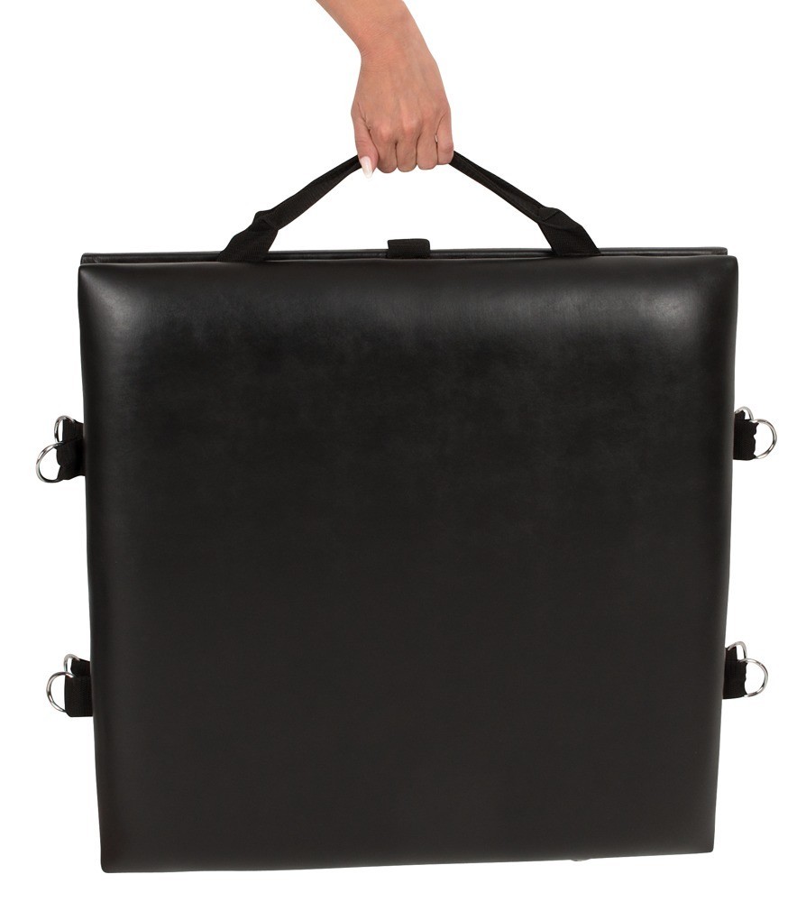 Avec la planche de bondage, vivez vos fantasmes érotiques presque partout. Pliable et compacte, cette planche noire se transporte facilement grâce à sa poignée de transport. Incarnez un personnage où bon vous semble ! Un peu d'espace suffit pour l'installer. Côté accessoires, la planche de bondage est complète : elle est fournie avec quatre entraves pour les bras et les jambes, ainsi qu'une entrave pour le cou. Fixez-les à la planche de différentes manières grâce à des mousquetons. Un bâillon, un fouet et un bandeau complètent l'expérience. Repoussez vos limites et explorez vos fantasmes sans frontières !