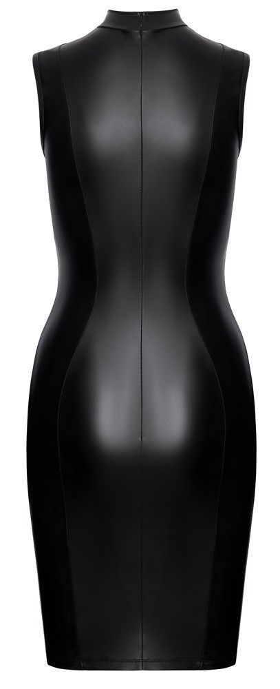 Robe sans manches, audacieuse et décolletée, dans un élégant noir mat. Sa coupe cintrée et structurée présente un col montant et une longueur genou. Deux ouvertures élastiquées mettent en valeur chaque sein. Des bretelles réglables avec cache-tétons argentés intégrés complètent ce look séduisant. Une longue fermeture éclair au dos facilite l'habillage et le déshabillage. Douce et extensible pour un confort optimal.