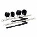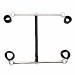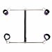 . 2 barres en métal chromé reliés par sangle réglable en longueur. 4 menottes souples noires avec fermeture velcro