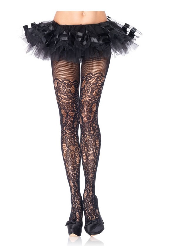. Décoration florale jusqu'à mi-cuisses imitant un bas porte-jarretelles . Résille en fine résille sur le haut du collant . Taille élastique . Divers coloris disponibles . Taille unique (42/50)