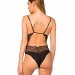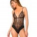 Body noir en dentelle florale transparente et partie opaque dessinant un slip échancré