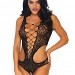Body combinant la résille et dentelle florale, ouvert à l'entrejambe et aux fesses nues