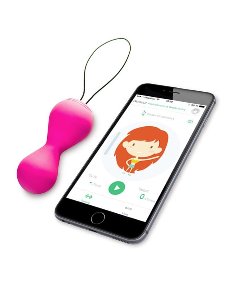 Boules de geisha vibrantes roses contrôlées via une application Smartphone à télécharger gratuitement sur Apple Store ou Google Play Store.