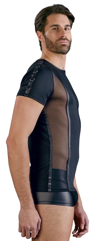 T-shirt opaque moulant ras de cou et bandes voile sur les côtés