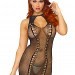 Robe noire en résille sans coutures, ras de cou et décolleté trou de serrure.