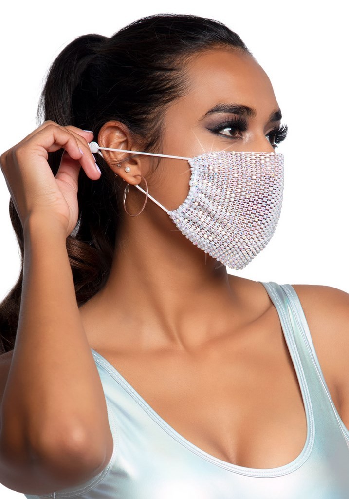 Couvre masque composé d'une bande triangulaire couverte de strass aux lanières réglables pour les oreilles.