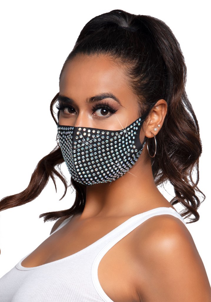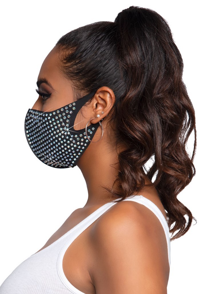 Masque réutilisable avec strass recouvre le visage jusqu'aux oreilles pour un confort optimal.