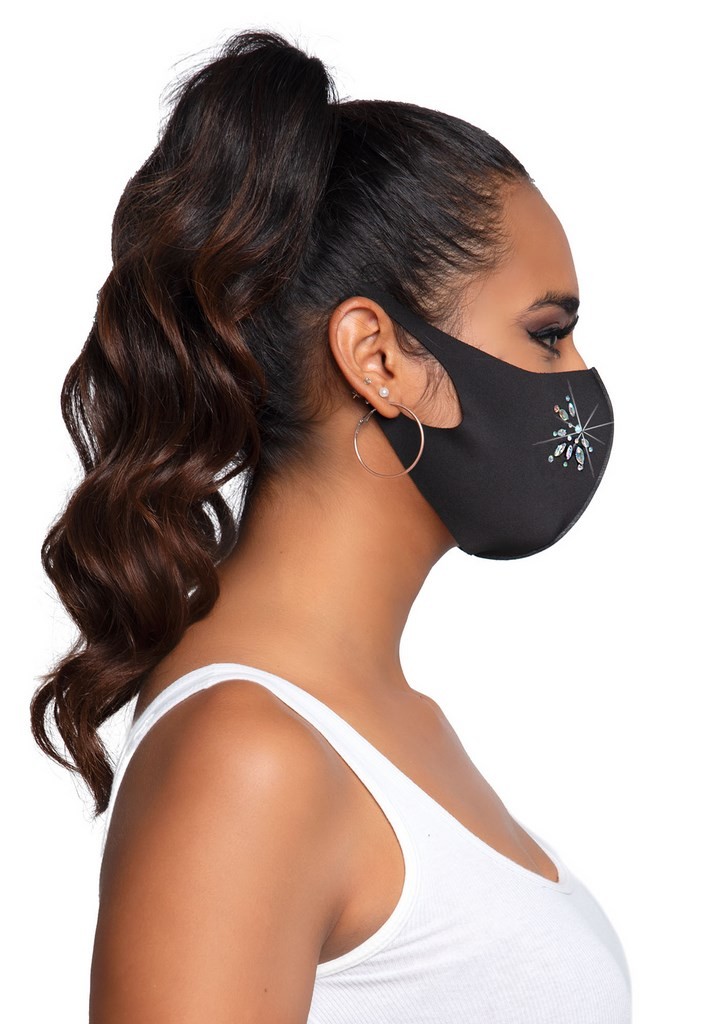 Masque réutilisable avec strass à décoration florale recouvre le visage jusqu'aux oreilles pour un confort optimal.