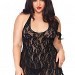 Nuisette noire semi-transparente en dentelle imprimée florale