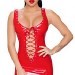 Mini robe en vinyle rouge lacée avant et arrière à la manière d'un corset