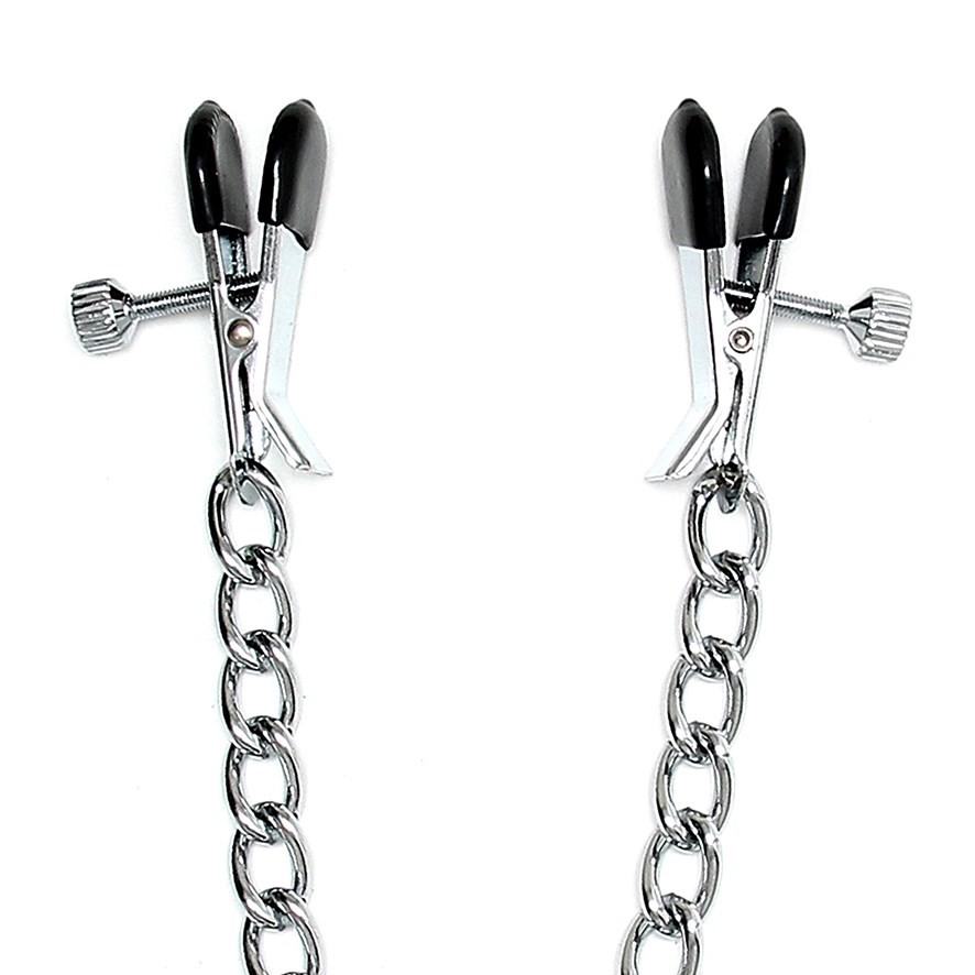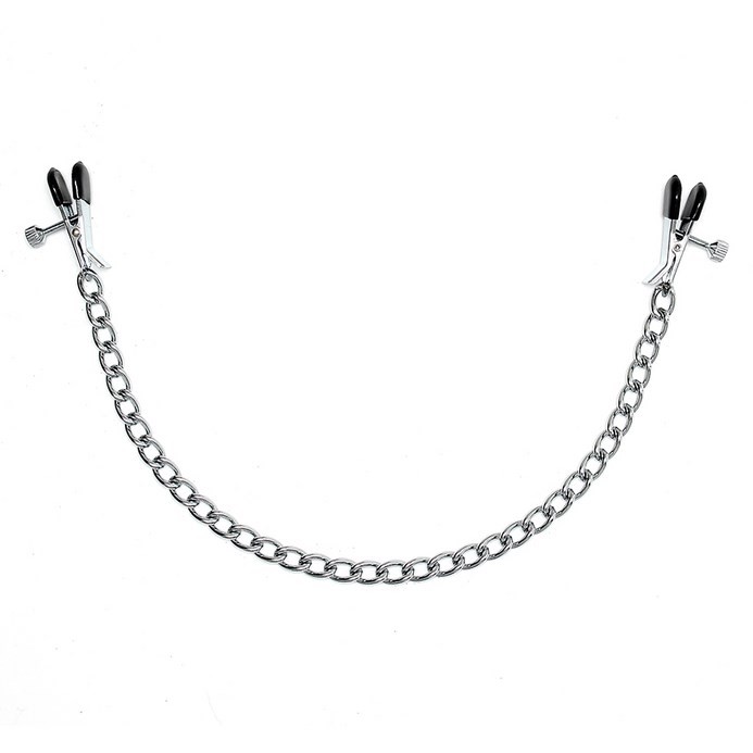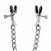 . Pinces à seins en métal avec protection en plastique . Pression des pinces réglable selon vos goûts par une vis . Chaîne en métal reliant les 2 pinces . Pince = 1,4 cm de largeur - Longueur : 4,5 cm