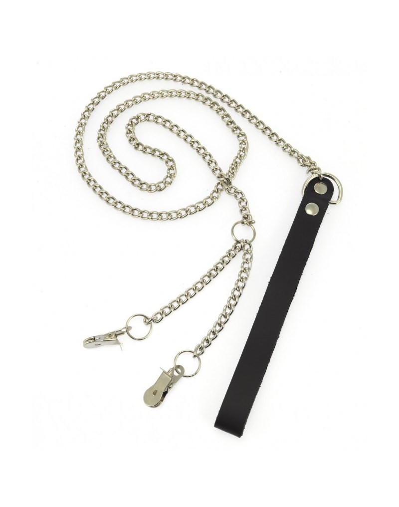 Laisse en chaîne avec pinces tétons ou vaginales plates métalliques