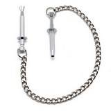 Chaîne avec pinces métalliques à tétons et lèvres vaginales ou testicules