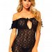 - Décolleté avec ouverture entre les seins, décoré d'un petit noeud satiné en bordure supérieure