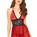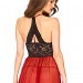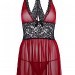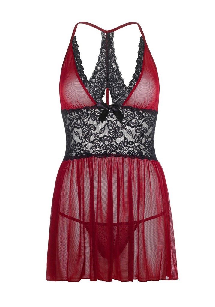 Nuisette bordeaux en voile semi transparente et dentelle florale noire