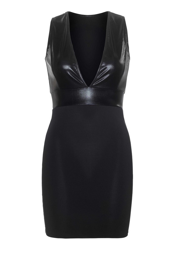 Robe en micro fibre au décolleté plongeant wetlook (effet mouillé) aux larges bretelles