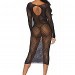 Longue robe noire résille aux motifs chevrons semi-transparente