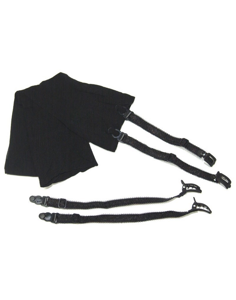 Jarretelles avec des petites pinces pour maintenir les bas accrochés aux lèvres vaginales.