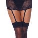 Porte-jarretelles noir en micro résille transparente et décorations florales